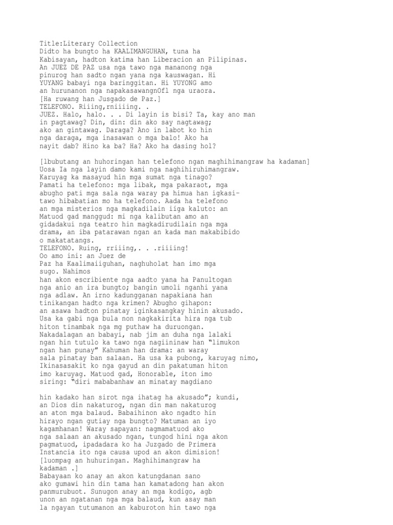 Hiya e dukado Waray gud alagdi kay din man gwapo An iya baribad Di ak ha im Mano. Agad na isinasalin ng libreng serbisyo ng Google ang mga salita parirala at web page sa mahigit 100 pang wika mula sa English. Romero ay tinawag na Pilipino ang wikang pambansa.
